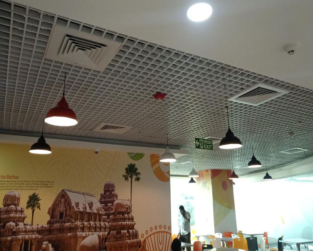 Some of our project examples include cases where a metal grid system with G.I lay in regular in clean area spine was implemented over a 60,000 square feet area in a leading multi-national corporation. Such examples reflect the ability to incorporate tasteful aesthetics into the ceiling space, without any compromise on the form or function.